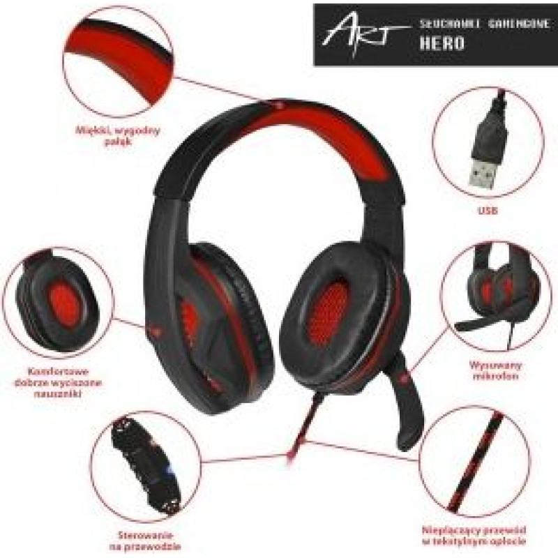ART headphones gaming with microphone HERO USB