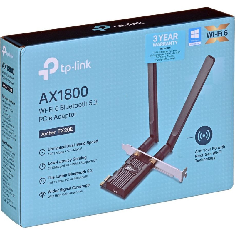 Tp-Link AX1800 Wi-Fi 6 Bluetooth 5.2 PCIe Adapter