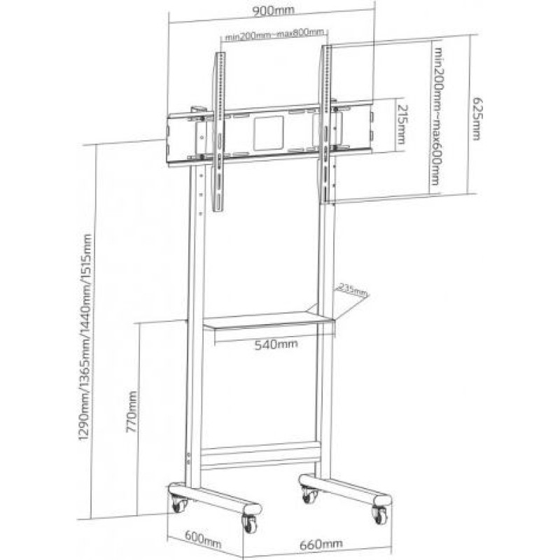 Techly Mobile stand 50-90 inches 70kg with AV shelf